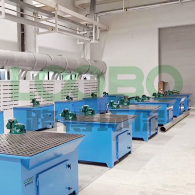該套打磨除塵系統(tǒng)包含打磨工作臺、吸塵風墻和與其相配套的除塵器等除塵設備和送新風設備,以及全新的風機、電機、控制柜、防爆隔音閥、管道、地溝蓋、虎鉗等配套設備。